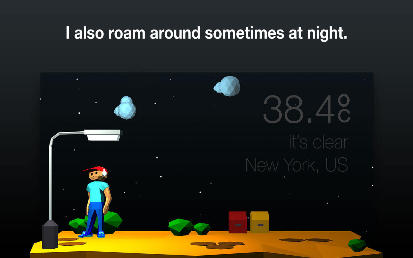 Weather3D is an impressive weather app for your macOS and unlike any other weather app available, Weather3D brings you weather information in an amazing 3D style, so that what matters most to you, all the important weather updates are delivered to you through widget which sits looking attractive on your desktop displaying the weather of a place . It lets you keep a 3D animating widget on the desktop that generates scenic representation of the current weather condition of the place you set.