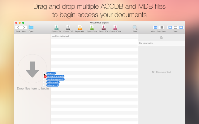 ACCDBAccessampApplicationsDeveloper toolsExplorerExportFilesMDBOpenview ACCDB MDB Explorer – Open, view & export Access files 2.4.7 by mac torrent May 14, 2020 May 14, 2020 ( ACCDB MDB Explorer – Open, view & export Access files 2.4.7 )Loading... Download Are you looking for an alternative to Microsoft Access, view ACCDB, MDB, ACCDE, MDE database files and have them exported into other file formats? There are a lot of tools out there but only a few that you can really count on, ACCDB MDB Explorer may just be what you need. ACCDB MDB Explorer is a file viewing tool specially designed for easy viewing ACCDB, MDB, and MDE database files without having an Access license. This application can be used to open tables from multiple Access databases, have your table structure shown and described in terms of column, index and relation, it also has a user-friendly interface that simplifies files viewing and exporting. Make your everyday life easier with ACCDB Explorer: – Powerful filtering capabilities – Sorting and searching functions – Readable attachment field from Access 2007 – Readable calculated field from Access 2010 – Image viewer and text viewer – Full screen mode – Unicode data support – Create multiple column filters to narrow down search results – Export data into the most popular formats such as CSV, TXT, XML and XLSX – Generate SQL files for other popular databases: MySQL, PostgreSQL, Oracle, SQLite, SQL Server Compatibility: OS X 10.6 or laterHomepage https://geo.itunes.apple.com/app/id577722815 Screenshots Name: ACCDB_MDB_Explorer_2.4.7_MAS__TNT_Mactorrents.io.dmg Size: 14 MB Files ACCDB_MDB_Explorer_2.4.7_MAS__TNT_Mactorrents.io.dmg[14 MB] Download Related Posts:MDB ACCDB Viewer 2.3.1Large Files Finder 1.5.1FCPX Full Access – Turbulence Effect for Final Cut ProLarge Files Finder 1.5.1 FiXED Download ACCDBAccessAMPExplorerexportFilesmac torrentmac torrentsMDBOpenView 0 comment TwitterRedditEmail mac torrent MacTorrent - Torrents in Mac. Free Apps, Games & Plugins. Apple Final Cut Pro & Logic Pro X, Adobe Photoshop, Microsoft Office, Pixel Film Studios, previous post Path Finder 9.3.1 next post Adware Zap Pro 2.7.4.0