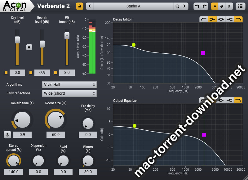 AconAcon Digital VerberateApplicationsDigitalFreeMacSoundsv211Verberate Acon Digital Verberate v2.1.1 by mac torrents November 30, 2019 November 30, 2019 ( Acon Digital Verberate v2.1.1 )Loading... Download Download Acon Digital Verberate v2.1.1 When it comes to reverb, it’s all about the sound quality. Verberate is an algorithmic reverb plug-in that simulates real acoustical surroundings with exceptional realism. The first Verberate version already raised the bar. Version 2 introduces the Vivid Hall algorithm that adds time variance to avoid the stiffness that plagues convolution based reverbs while preserving the natural high density reverb tails of Verberate 1. Real acoustical surroundings will have slight variations due to air currents, moving performers or movements in the audience. While these variations may seem subtle, the effect towards the end of the reverb tail is significant, since the sound is reflected a large number of times before the reverb tail fades out. The new Vivid Hall algorithm models these random variations without artifacts like chorus effects or pitch changes, and is therefore capable of simulating reverberation of real halls with a higher degree of realism. Highlights Highly realistic simulation of real acoustical spaces and mechanical plates The new time variant Vivid Hall algorithm goes beyond convolution Powerful decay editor allows frequency dependent reverb times Versatile integrated output equalizer Information CompatibilityOS X 10.8 or later LanguagesEnglish Web SiteDeveloper Website What’s New in Acon Digital Verberate v2.1.1 Release notes not available at the time of this post. Screenshots Name Acon Digital Verberate v2.1.1 mac-torrents.net.zip Size 34.37 MB Created on 2019-11-28 15:36:22 Hash f3bcba2b07d9d2f26769d9634a6638d28448e49f Files Acon Digital Verberate v2.1.1 mac-torrents.net.zip (34.37 MB) Download Related Posts:Acon Digital Acoustica Premium 7.5.1Acon Digital Restoration Suite 2 v2.1.27Digital Clock 3D 2.1.2Bogren Digital Ampknob BDH III v1.2.193 Download AconDigitalmac torrentmac torrentsv211Verberate 0 comment TwitterRedditEmail mac torrents Mac Torrents - Torrents for Mac. Free Apps, Games & Plugins. Apple Final Cut Pro & Logic Pro X, Adobe Photoshop, Microsoft Office, Pixel Film Studios, previous post Downie 3.9 next post Audio Damage AD036 Dubstation 2.1.0a