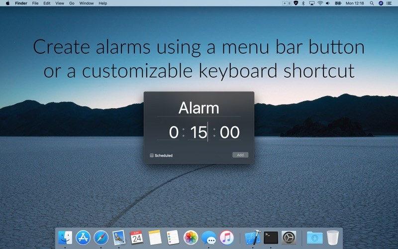 A lighting fast alarm manager that is always one click away, in your menu bar. You can use it in 3 quick and easy steps:
