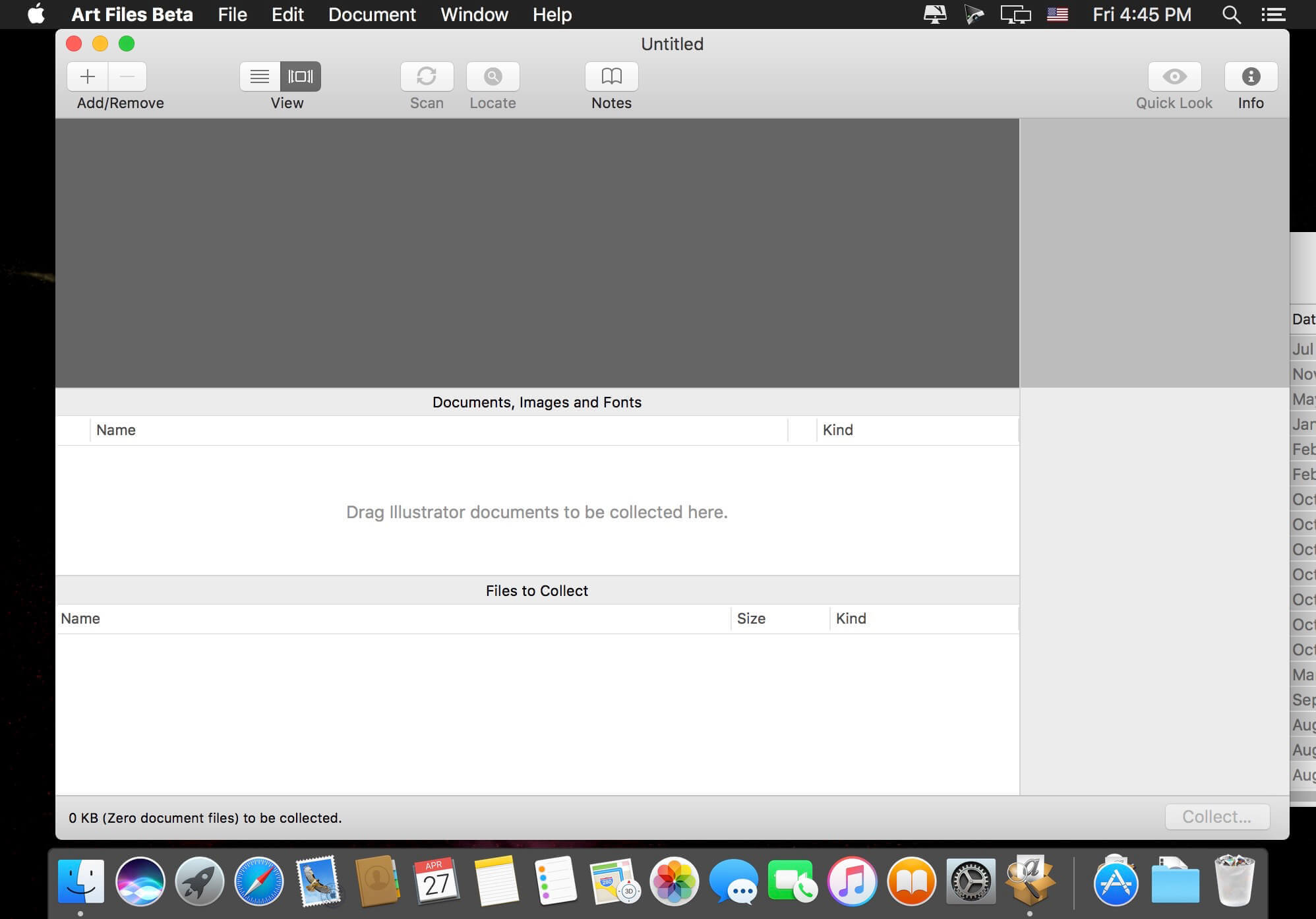 Art Files is a stand-alone application that takes the tedious task of collecting Illustrator documents, linked images, and fonts for graphics files, and turns it into a simple point-and-click operation. Rather than focus on the in-depth “preflight” nitty-gritty that other applications have done in the past, Art Files focuses on gathering just the information you need to get your files packaged up for your service provider.
