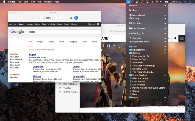 Bookmarks Menu allows you to access all of your Safari bookmarks from a system wide menu.