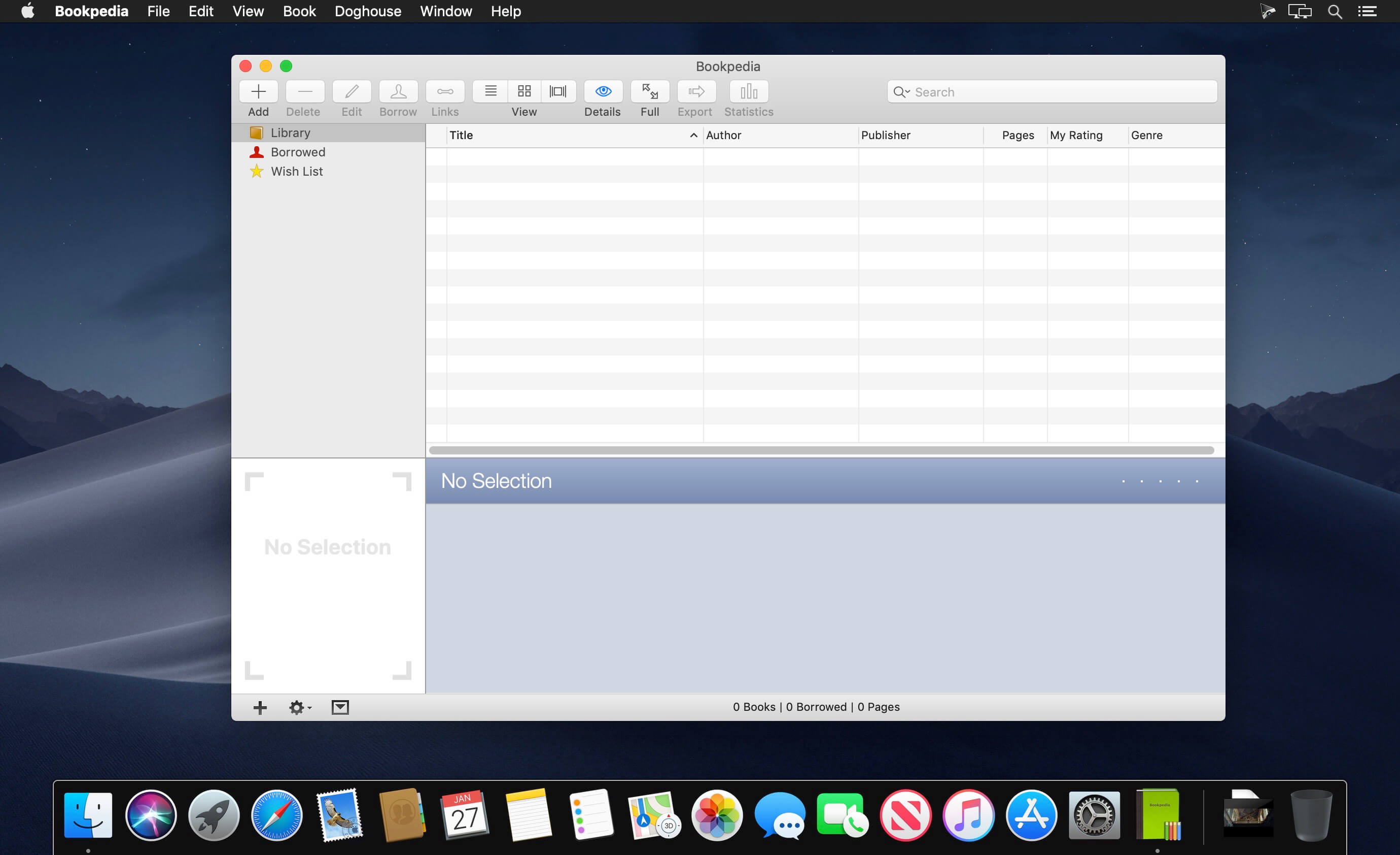 Bookpedia is book-cataloging software for OS X. To save you time and effort, it retrieves book information from the Internet, either by entering keywords or using a webcam or a scanner. Create smart collections and start a wish list and a borrowed list so you never loose a book again. View your entries as a standard list, browse only the covers in grid view or Cover Flow, or use the details view for a personalized look of Bookpedia. Share your collection with friends, using the customizable HTML export templates.