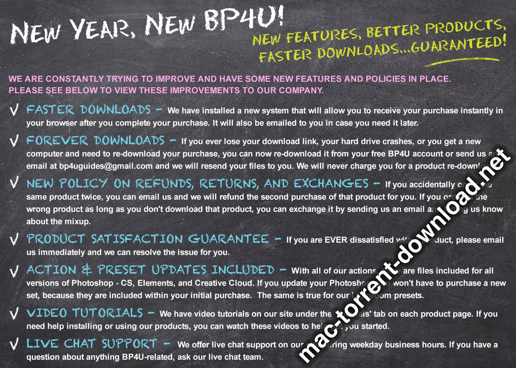 ActionsAdobe PhotoshopApplicationsBundleCreativeCREATIVE EDITING ACTIONS BUNDLEDesign AssetsEDITINGFreeMacPhotographer ResourcesPhotoshop CREATIVE EDITING ACTIONS BUNDLE (PHOTOSHOP) by mac torrents November 29, 2019 written by mac torrents Name Photographer Resources CREATIVE EDITING ACTIONS BUNDLE PHOTOSHOP mac-torrents.net.rar Size 5.67 MB Created on 2019-11-29 00:19:49 Hash 4e0de39658d0b0a77f5cb46e9d7b5c8379ff216b Files Photographer Resources CREATIVE EDITING ACTIONS BUNDLE PHOTOSHOP mac-torrents.net.rar (5.67 MB) Download Photographer Resources – CREATIVE EDITING ACTIONS BUNDLE (PHOTOSHOP) Do you like creative edits? Ever wanted ALL of our different creative action sets all in one pack? Your WISH has been granted! Tired of wasting your life editing photos all day long? Want to shave hours off of your editing time? Well now you can with Our Creative Editing Actions Bundle! We have added FIVE of our best-selling action sets to this collection. That’s a total of 115 actions! Woah! These are perfect for both indoor and outdoor photos! All of our Photoshop Actions will work with ALL versions of Photoshop and Elements! (Photoshop CS 2-6, Photoshop CC and Elements 6-13 and up. Earlier versions have not been yet tested. 115 creative editing actions bundled into one great set! * WHIMSICAL ACTIONS MADE EASY! – Do you love a good creative touch to your photos? How about a very enchanting, whimsical feel? Good news! This set is for you!! {Includes 25 actions} * BP4UAGRAM ACTIONS – BP4Uagram!: The Insta-look you’ve been waiting for! Have you ever wished you could get a creative feel to your photos you can get from some popular apps in Photoshop? {Includes 37 actions} * COLOR POP ACTION PACK – Do you like a little pop of color in your black and whites? Are you interested in making parts of your photo stand out above the rest? Alright! Then let’s get this party started….the selective color party! {Includes 9 actions (+5 bonus actions for CS users only!)} * COSMETIC ACTIONS MADE EASY! – Do you need tools to remove acne, wrinkles, and cellulite? Do you want to make those teeth a little whiter? Looking for some help slimming waists, thighs, and arms in post-processing? Well, look no further! These actions are perfect for you! {Includes 24 actions} * NEWBORN ACTIONS MADE EASY! – Are you confused on how to do a composite to get those uh-mazing posed newborn shots where the baby holds his or her head up? Have you been wanting that “faded blanket” look, but are not sure how to achieve it? Well, this is the action set for you!! {Includes 20 actions} Information CompatibilityPhotoshop CS 2-6, Photoshop CC and Elements 6-13 and up LanguagesEnglish Web SiteDeveloper Website Screenshots Download November 29, 2019 TwitterRedditEmail
