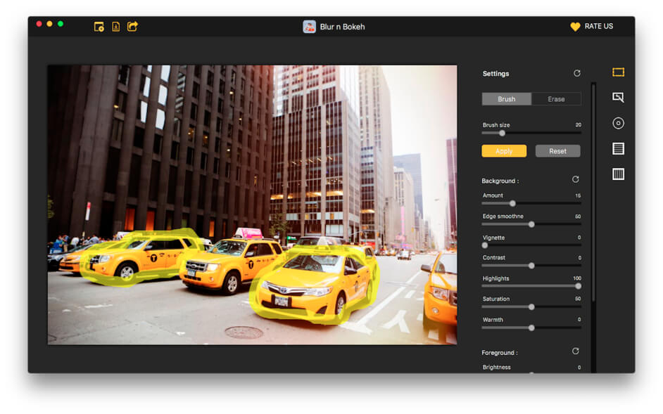 Blur n Bokeh is a tool to give highlight and focus to your images by blurring or editing the background of your image. With Blur n Bokeh you can easily apply our great filter effects to the selected area or the background.