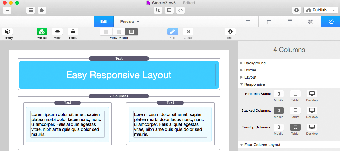 Stacks is a new way to create pages in RapidWeaver. It’s a plugin designed to combine drag-and-drop simplicity with the power of fluid layout.