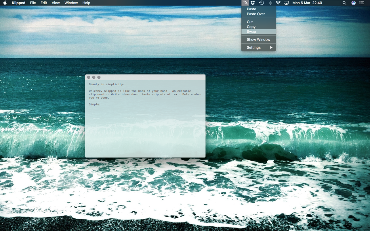 Klipped is a minimalist scratch pad that is a buddy for all your other apps. Write ideas down. Paste text and use as a clipboard; delete when you’re done. No files, no messy tabs – just a single window. Dictate ideas. Paste code snippets. Take notes.