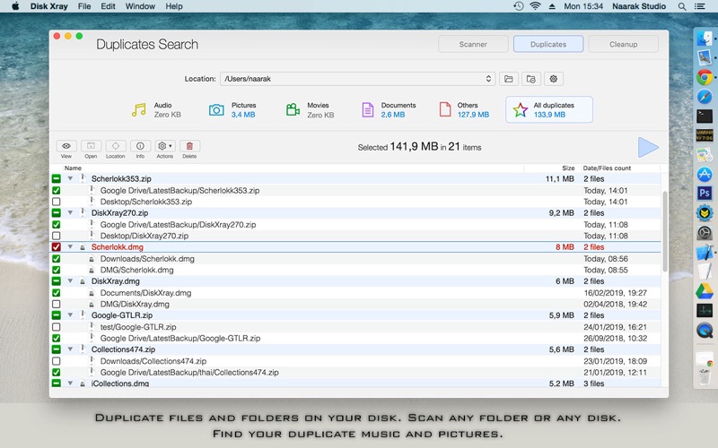 Disk Xray is a disk-usage statistics viewer, duplicate files and folders finder and cleanup tool for OS X. It performs three fundamental functions, and it performs them extremely well. It also provides you maximum security, restoring all files if you removed something accidentally. Features
