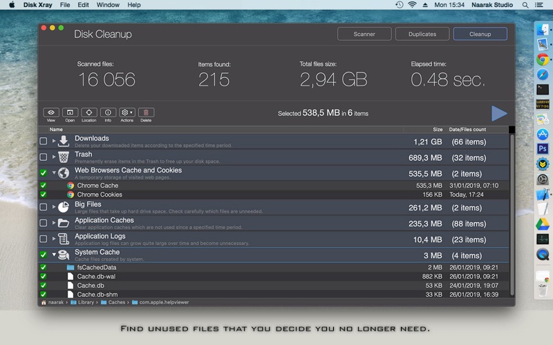 Hidden Files Find even hidden debris on your disk, such as logs and caches of apps, browser data and so on.
