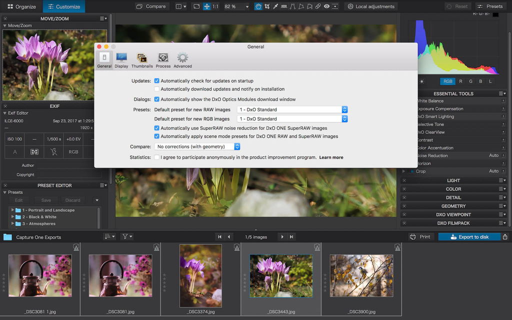 Produce RAW and JPEG images with the best image quality, effortlessly: DxO PhotoLab provides a complete set of smart assisted corrections that you can manually fine-tune at any time. Take control on every aspect of your photos: effectively remove noise, get rid of light constraints, recover color details, apply sophisticated optical corrections, and enhance details.