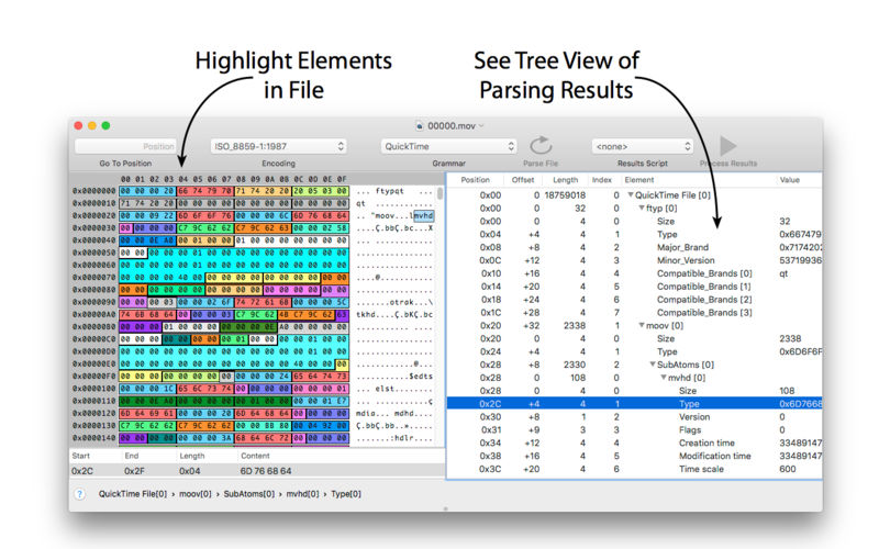Synalyze It! Pro is a simple-to-use hex editor which will allow you to easily edit and analyze binary files of any size. It features enhanced support for many character encodings and enables you to interactively define “grammars” for various file formats to speed up analysis and reduce manual decoding of files. Incremental search for strings and numbers, printing and other features make it a quite powerful tool.