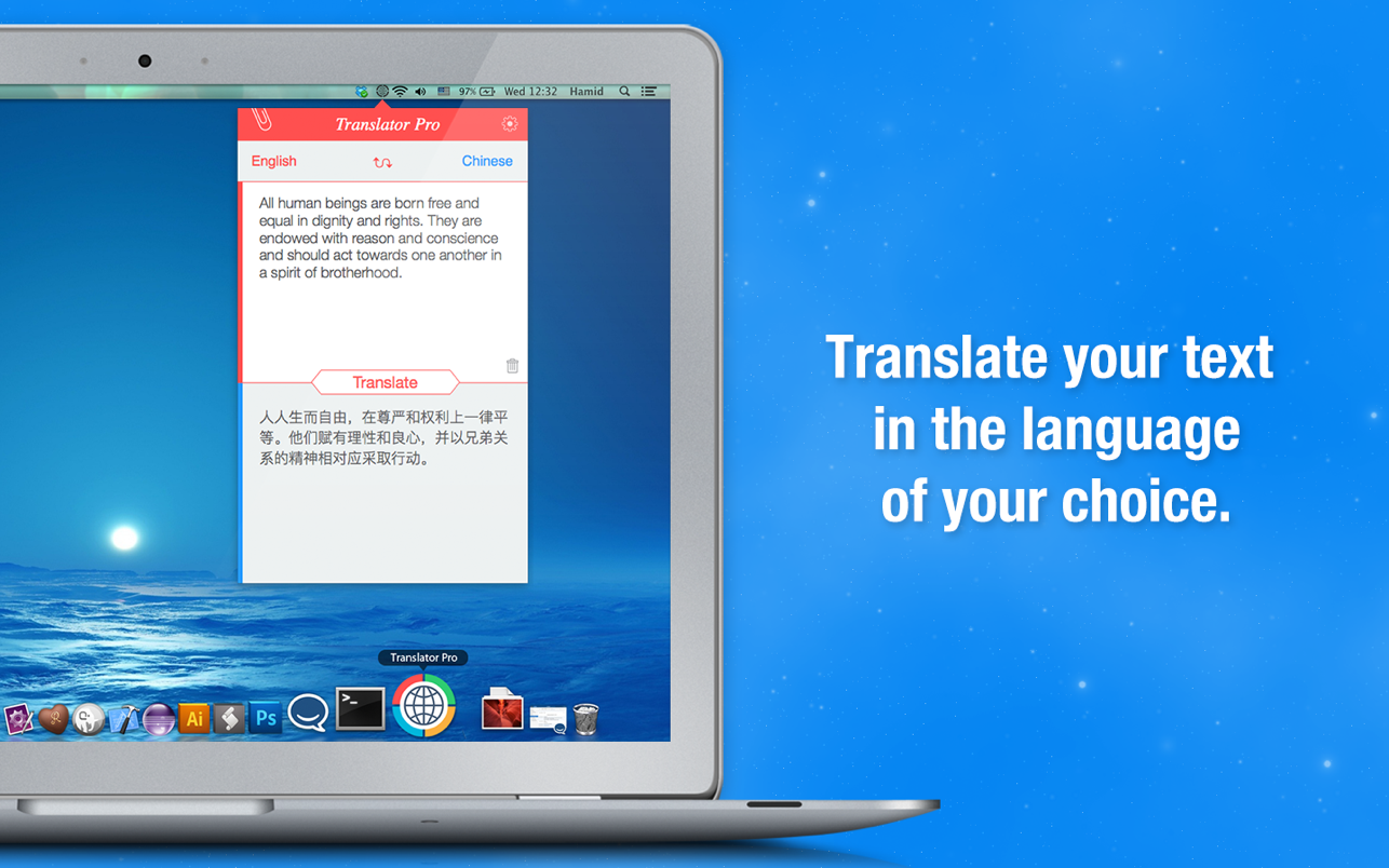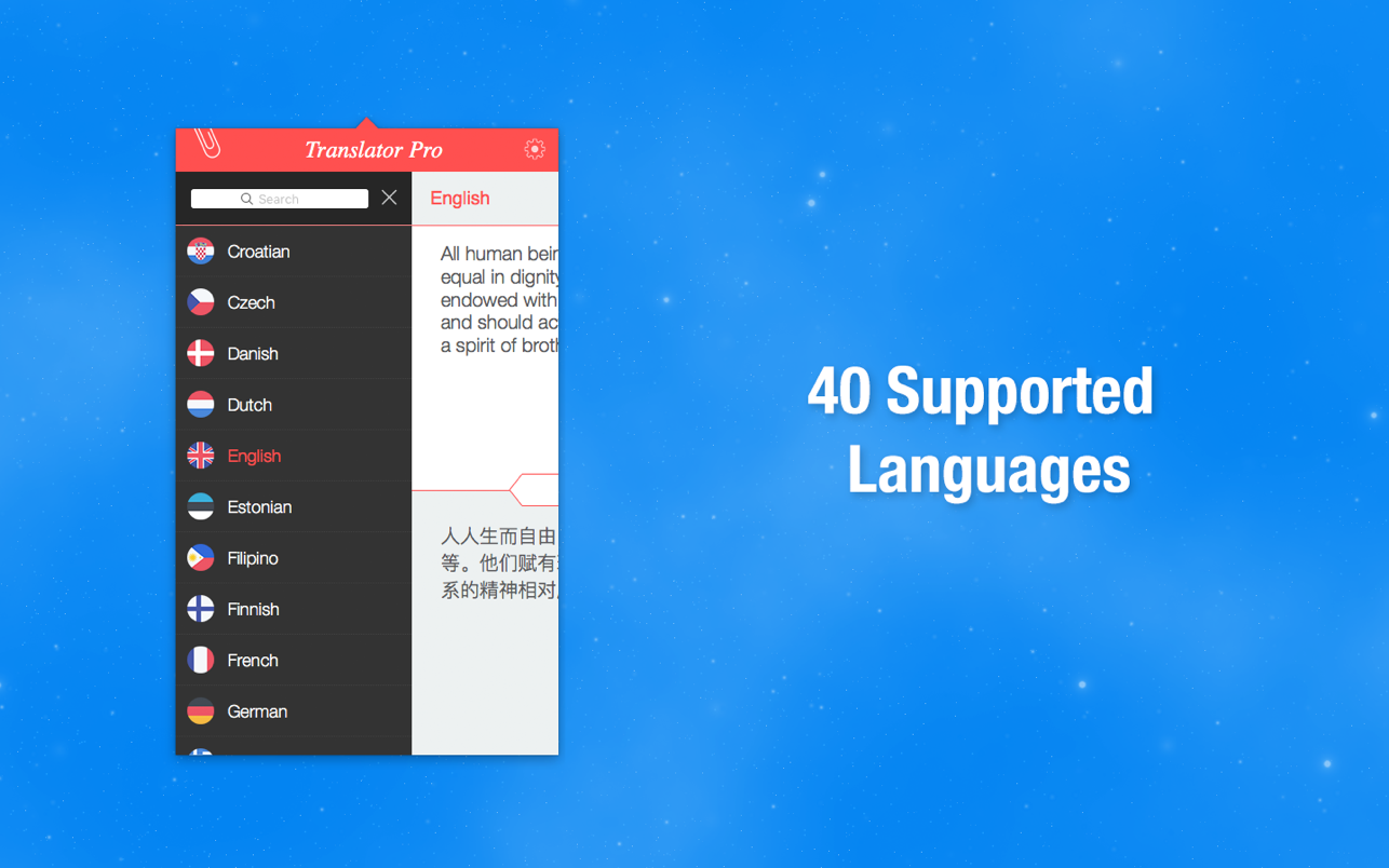• Don’t navigate to translation websites anymore when you’re reading an article in Safari or editing a document in Pages. Just use Mate everywhere you go!