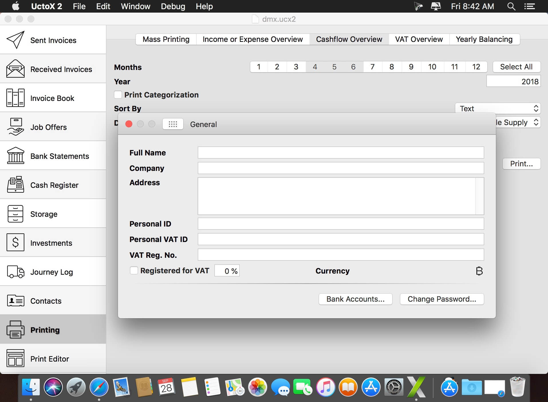 - Additional fields for organizing your records including payee, description, check #, class (personal/business travel expenses).
