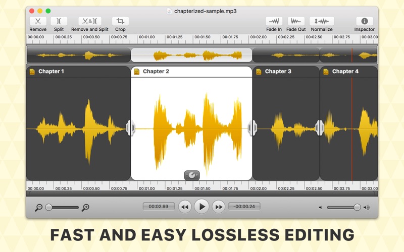 Easy Editing: Trim, split, fade in and out, all with a few simple clicks. Fission is designed with simplicity in mind.