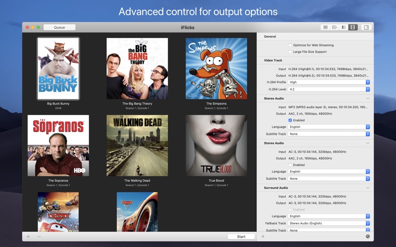 It is now possible to process videos containing HEVC content just as quick as H.264. Direct passthrough of HEVC tracks from mkv files to m4v now only takes seconds, just like it has always worked for H.264 tracks. This works just as quick for all your HD content, no matter if 4k or 1080p. Additionally you can use iFlicks 3 to encode video tracks to HEVC. To make use of this feature you need at least macOS High Sierra, as it is the first version to natively support HEVC.