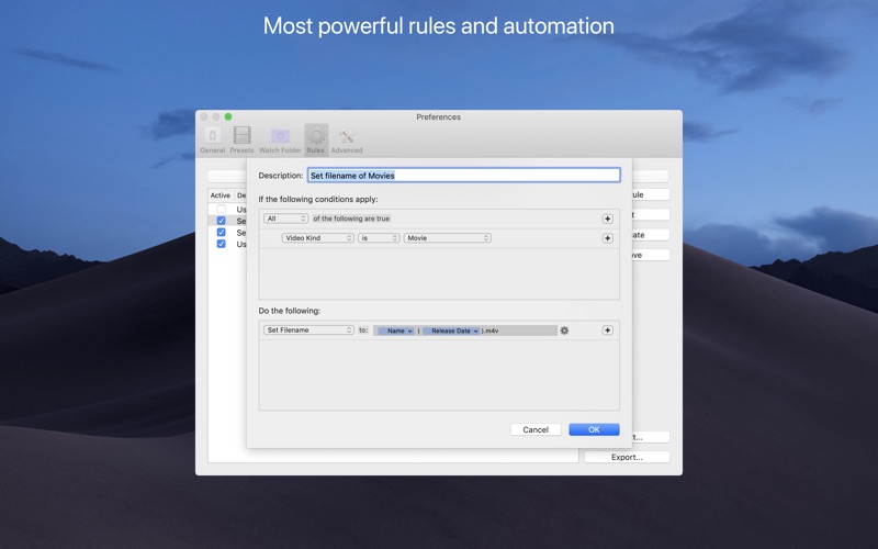 To provide even more flexibility to our power users, it is now also possible to create custom presets with different settings from the builtin ones. It is also possible to use these custom presets together with the immensely powerful rule system to create an even more customised workflow.