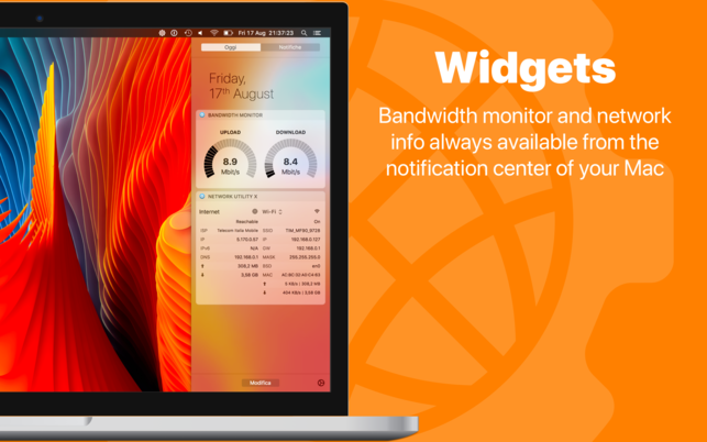 - Many new customizable widgets for the Notification Center of your Mac: check the state of your network with the panoramic widget of quickly get details about your WiFi connection or about a network adapter