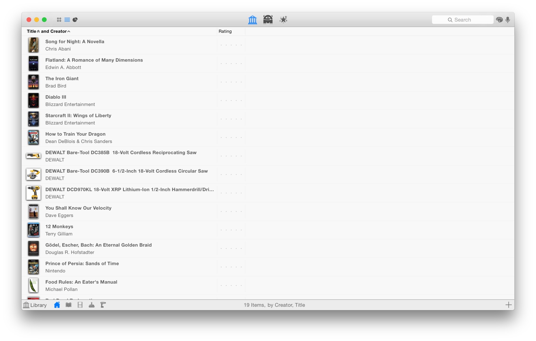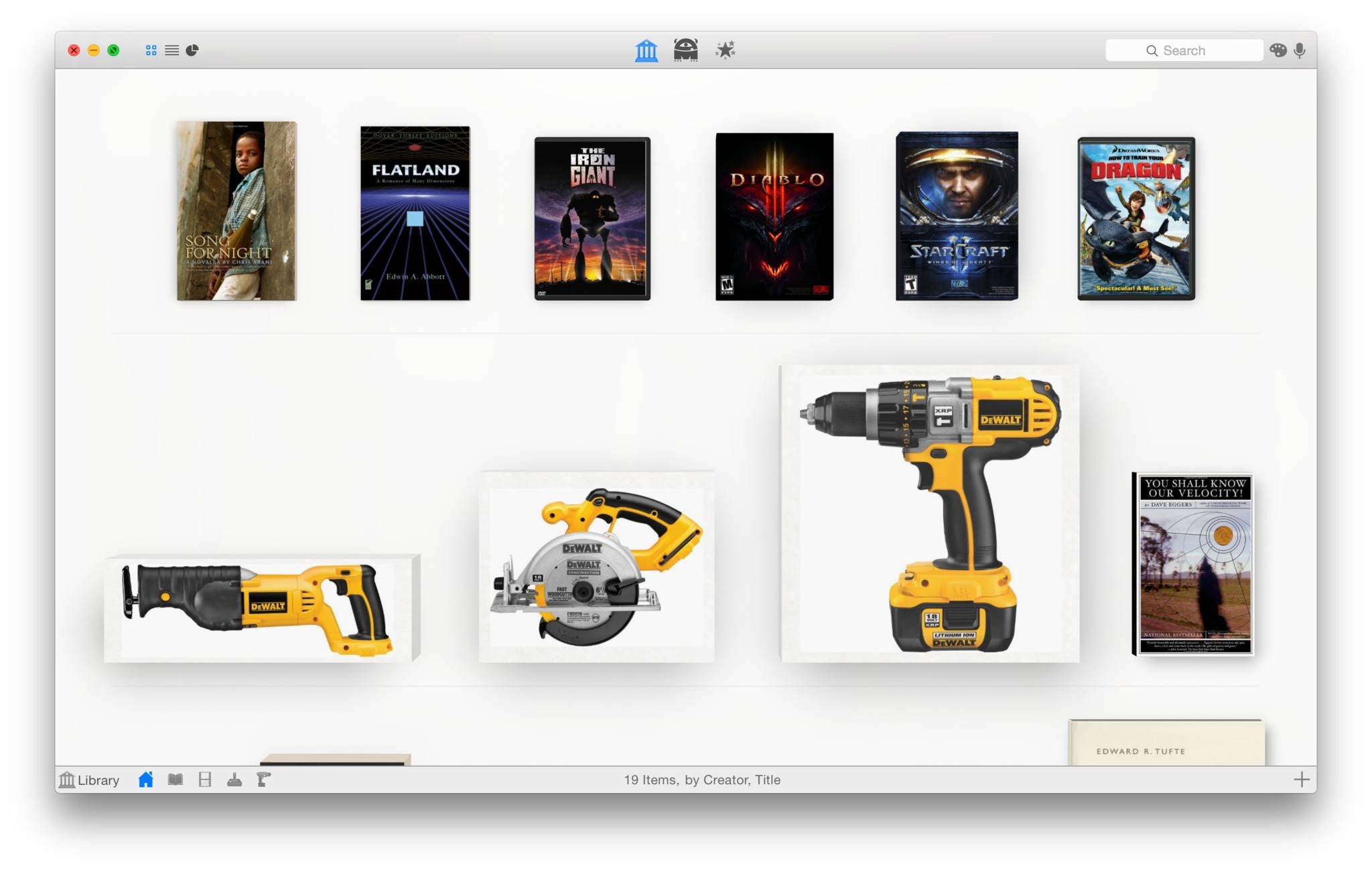 Built-in barcode scanner The bottom tool bar helps you switch between libraries and filter the displayed items according to their type. Hence, you can separately display your books, movie, games, apps and tools collection. On top of that, you can easily add new items by scanning their product code using your Mac’s webcam, mobile device, Bluetooth or USB scanner.