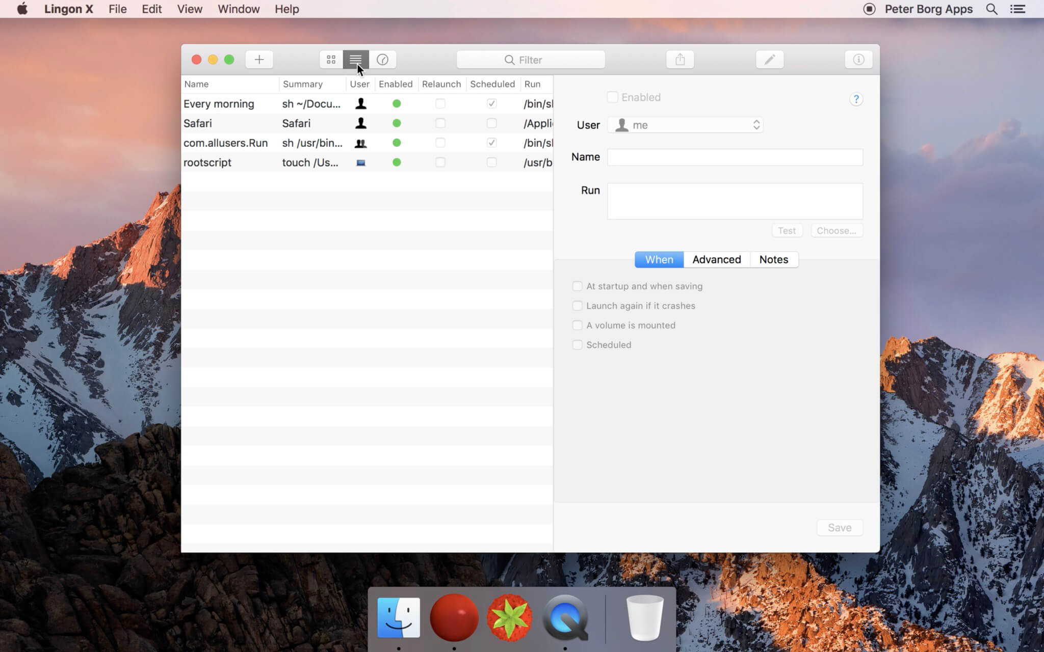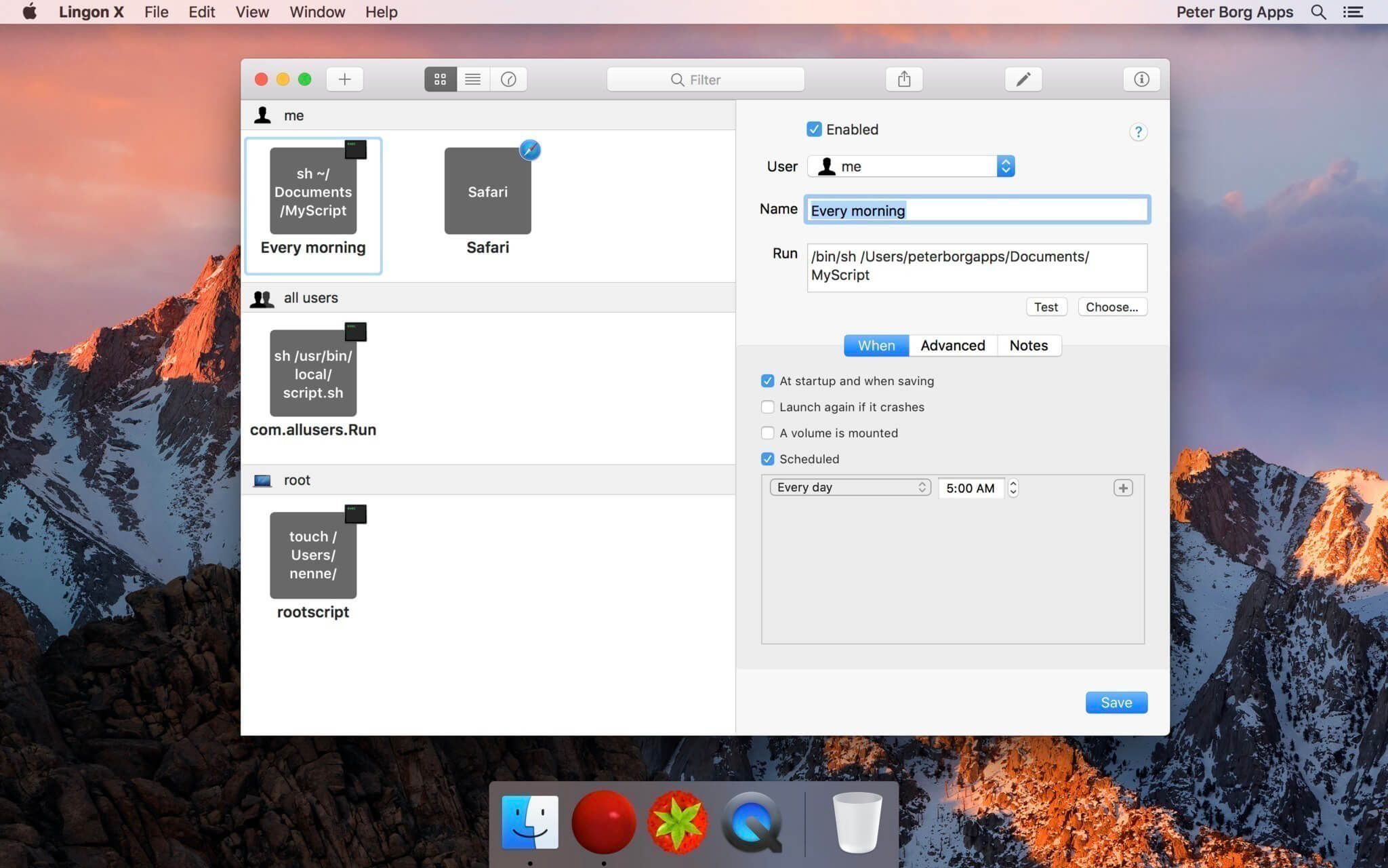 It can also make sure that an app or a script automatically restarts if it crashes. Lingon X can do all this for you and much more.