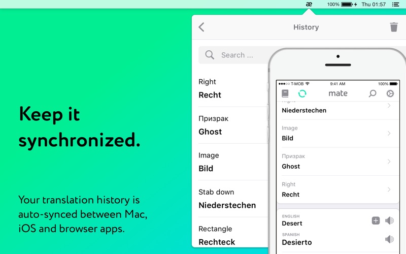 • Mate Phrasebook Easily create and curate word lists which are available even offline.