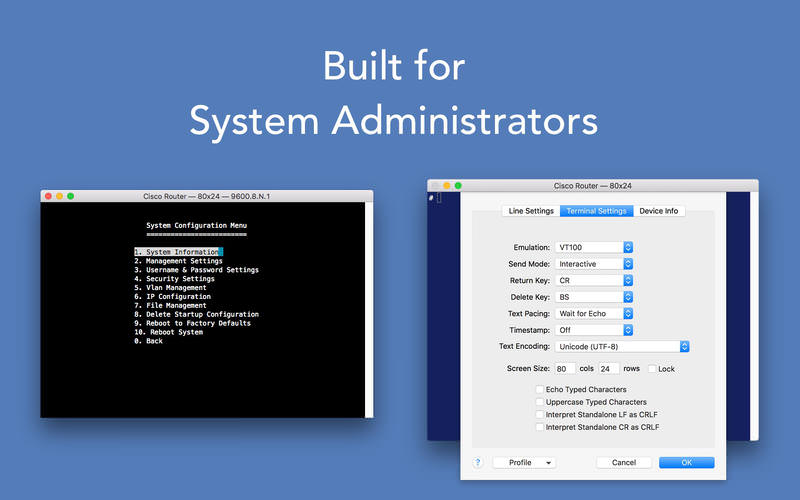 Serial makes it easy to connect your Mac to almost anything with a serial port, including routers, switches, PBXs, embedded devices and more.