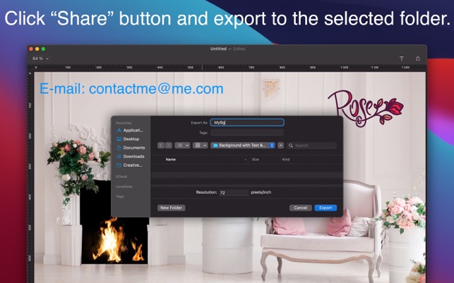 Just drop a picture into Text Hider, type or paste your secret text into the app, and press save. The picture or movie could then be saved, copied, or sent anywhere, and only Text Hider will be able to find and read that secret text.
