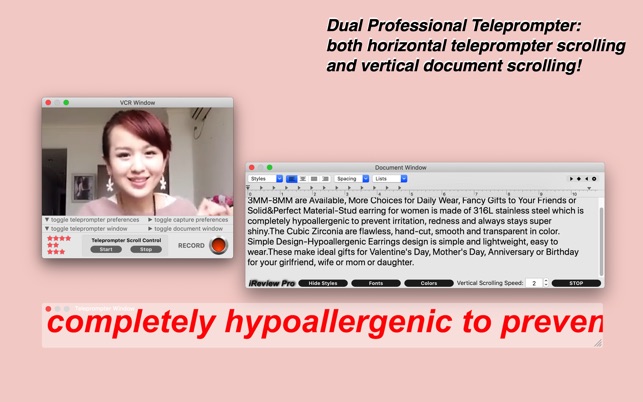 iReview is an easy-to-use App that combines an auto-scroll teleprompter and a video recorder. iReview is ideal for making video reviews, YouTube videos, presentations, lectures, and even video messages.
