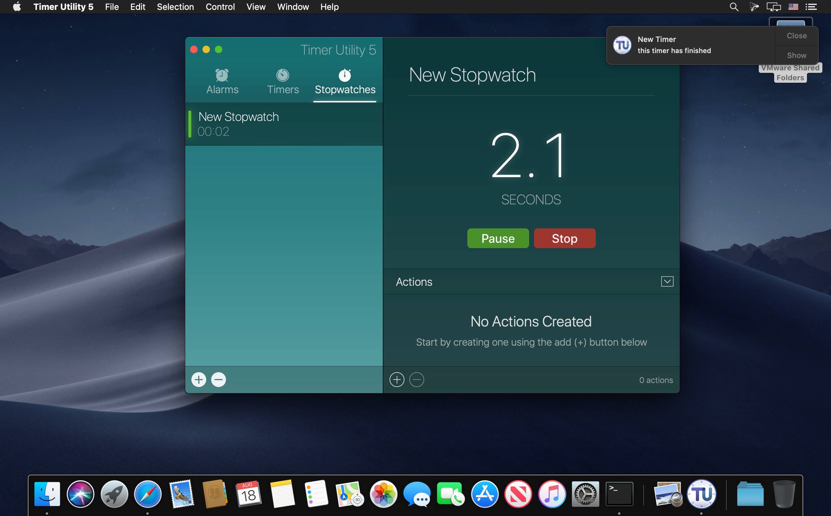 Timer Utility is an all-in-one timing tool that brings alarms, timers, and stopwatches to your Mac. We take it one mega step further with actions to create powerful workflows customized to your liking.