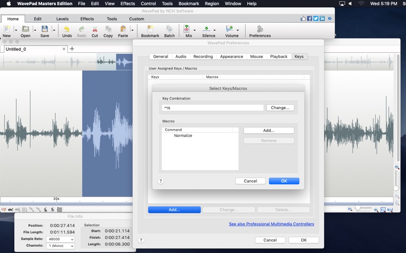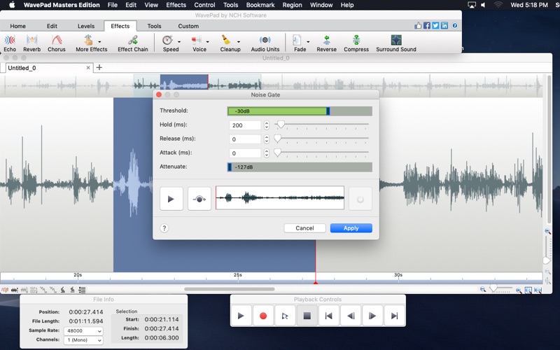 WavePad is a full featured professional audio editor program perfect for any audio project in the sound studio or at home. WavePad offers the ability to easily record and edit music with speed and agility, using insert, silence, auto-trim and more. Take your audio projects to the next level by adding effects, like: amplify, normalize, equalizer, envelope, reverb, echo, and reverse.