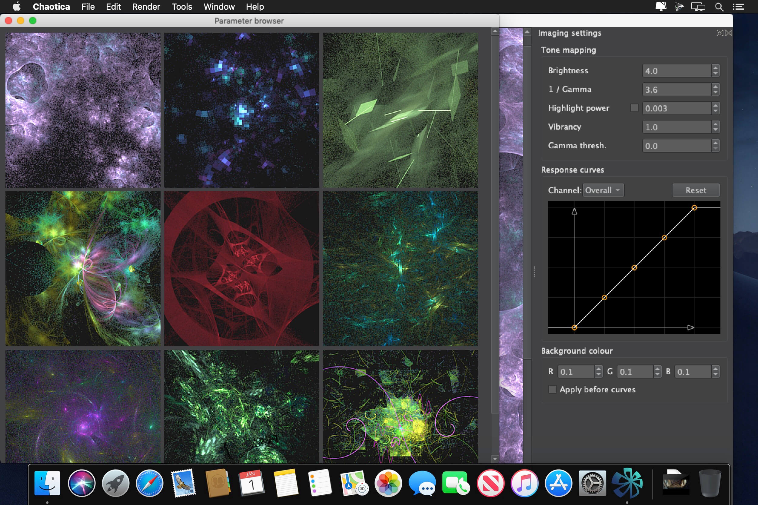 Chaotica is a next-generation fractal art application, designed for both novices and professional artists. Novice users can enjoy editing randomised fractals to produce stunning HD wallpapers and animations. Professional users will particularly value the fast, modern rendering engine. High quality animations and huge images for print are easily produced, with real-time imaging controls that will dramatically accelerate your workflow.