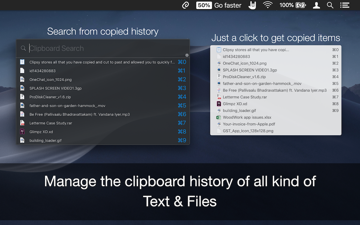 • Native Mac Interface – Paste or Delete clippings by swipe gesture.