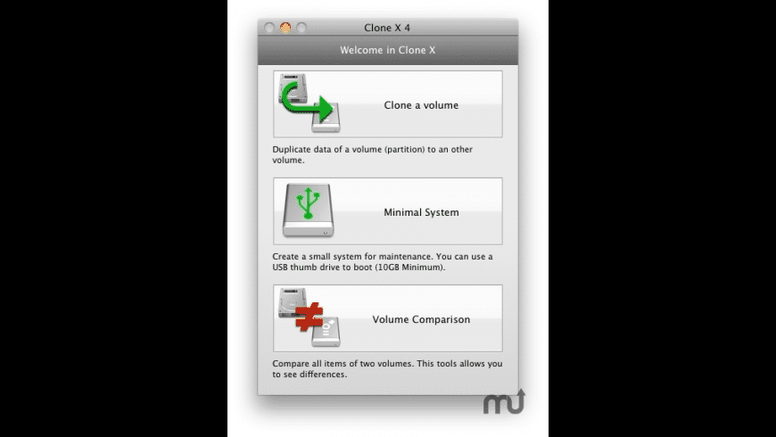 Clone your System: Clone X provides powerful features to analyze your system (OS X and OS 9), to execute a full copy (a clone) of your System, even if the system was installed and updated many times with the updaters provided by Apple. The clone is saved on an external drive, CD-R as well as a part of your internal disk. The clone is compressed to save disk space, and you can create as many clones as you need.