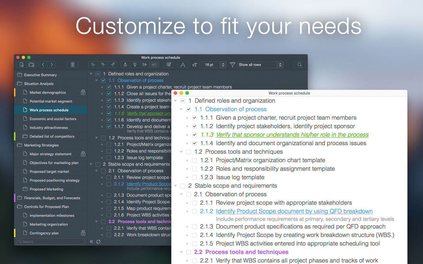 Cloud Outliner Pro 2.6 April 22, 2021 , Application, Productivity Name: Cloud_Outliner_Pro_2.6_MAS__TNT_Mactorrents.io.dmg Size: 9.78 MB Files Cloud_Outliner_Pro_2.6_MAS__TNT_Mactorrents.io.dmg[9.78 MB] Download Outlines are interactive and highly customizable notes that organize your plans, projects, and ideas in a clear way. Cloud Outliner enables you to create and share outlines between your Mac, iOS devices, and Evernote account. Got a sudden flash of insight? Don’t risk forgetting it – just enter it right away on whatever device is closest, and see your changes synchronized with all your devices at once. This tool is not yet another notebook app or sticky notes organizer for mobile devices. Not even a little! Thanks to tight integration with Evernote and iCloud, extensive import and export functionality, rich-text editor, and a truly intuitive user interface, the solution will become your reliable assistant both at work and at home. You can seamlessly synchronize your records with Evernote and iCloud, share your data in different ways (PDF, OPML, HTML, plain text, emails, and even paper copies), and format your notes in the built-in powerful editor. All your thoughts, ideas, ongoing tasks, and even arbitrary memos will be kept safe and available close at hand. You can simply focus on the things that really matter – and the Cloud Outliner will cover everything else. Install Cloud Outliner to reduce complexity and easily align your daily routines! FEATURES: Data management and protection: Flexible multi-tier document manager Highly visible color stickers to mark important records Password protection Customizable document templates Duplicate document operation Back and Forward navigation buttons Rich-text outline editor: Drag and Drop functionality for sorting and reordering rows Multi-selection feature to reorder rows, change indentation, or delete them all at once Optional checkboxes that facilitate selection Optional automatic numbering (3 styles) Adding notes to data and list items Customizable text size, color, and style Highlighting important rows using different text colors and styles View completed tasks Collapse/expand functionality for all items Filters for displaying only checked or only unchecked items Undo/redo operations Cut/copy/paste data to outlines or even external apps (Notes, Mail, Safari, etc.) Automatic highlighting of links and phone numbers Sharing of outlines: Export of outlines to PDF and HTML Import and export of OPML files Print outlines Share outlines to Twitter, Facebook, LinkedIn, Reminders, Notes, Email, Messages Synchronization: Also available for iPhone, iPad, and Apple Watch Sync outlines across all your devices with iCloud Sync outlines with Evernote Extra features: Light and Dark themes Customizable shortcuts Search by outline name or an arbitrary text Thanks to the autosaving, you don’t need to save documents anymore What’s New: Version 2.6 Optimized for Mac with M1 Minor fixes and improvements Compatibility: OS X 10.9 or later, 64-bit processor Mac App Store https://apps.apple.com/app/cloud-outliner-2-pro-outline/id1024917449 Screenshots