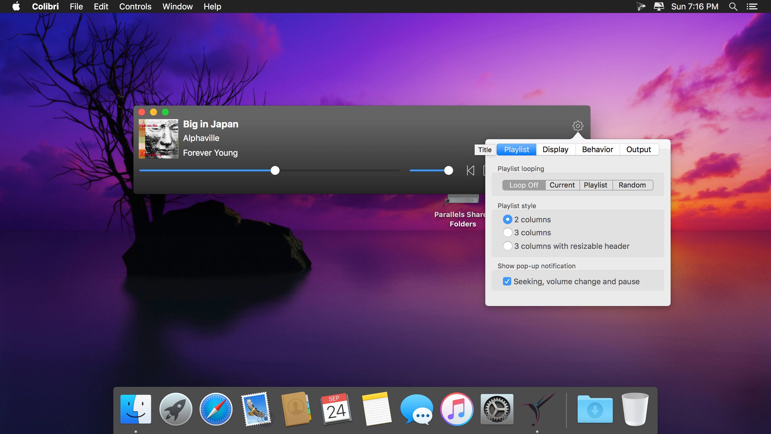 Saves your battery – Colibri uses a barely noticable amount of computing power during the playback of your music. The application is built using state-of-the-art Swift 3 programming language, the BASS audio engine is bundled as machine code while the interface uses built-in components by Apple. This was done in order to achieve a tiny footprint and to be as native to macOS as humanly possible.