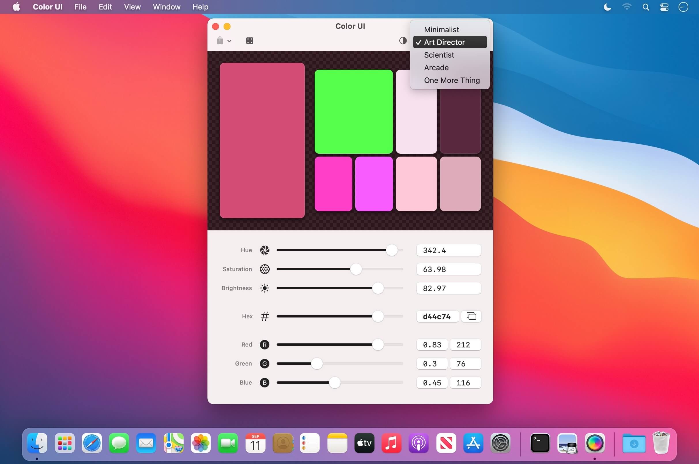 Color UI is an app to explore vivid colors and convert them into various formats. Tailored for the needs of Designers and Developers.