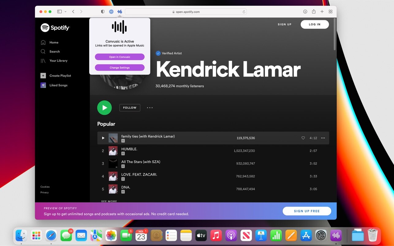 ApplicationsMusic Convusic 1.17 by mac torrent December 3, 2022 December 3, 2022 ( Convusic 1.17 )Loading... Download Convusic lets you automatically open links from Apple Music, Amazon Music, Deezer, Pandora, Spotify, Tidal, and YouTube Music in any other music app without lifting a finger. After you download Convusic & configure it with your preferred music service, links from any other music service will open in your preferred app automatically. When you receive music links from friends & family who use other music services, those links will open in your app of choice. No extra work required — set it up once and forget about it! You can access Convusic automatically using the included Safari Extension, or by copying and pasting music links into the app. Convusic supports iCloud Syncing, iCloud Handoff, Dark Mode, and is integrated deeply with your device. You can use Convusic on your iPhone, iPad, or Mac. What’s New: Version 1.17 Bugfixes Compatibility: macOS 10.15 or later, Apple Silicon or Intel Core processor Mac App Store https://apps.apple.com/en-us/app/convusic/id1591366129 Screenshots Name: Convusic 1.17 MAS [HCiSO]_Mactorrents.is.dmg Size: 3.27 MB Files Convusic 1.17 MAS [HCiSO]_ Mactorrents.is.dmg[3.27 MB] Download Download Convusic 0 comment TwitterRedditEmail mac torrent MacTorrent - Torrents in Mac. Free Apps, Games & Plugins. Apple Final Cut Pro & Logic Pro X, Adobe Photoshop, Microsoft Office, Pixel Film Studios, previous post Nova 10.4 next post Dropshare 5.24