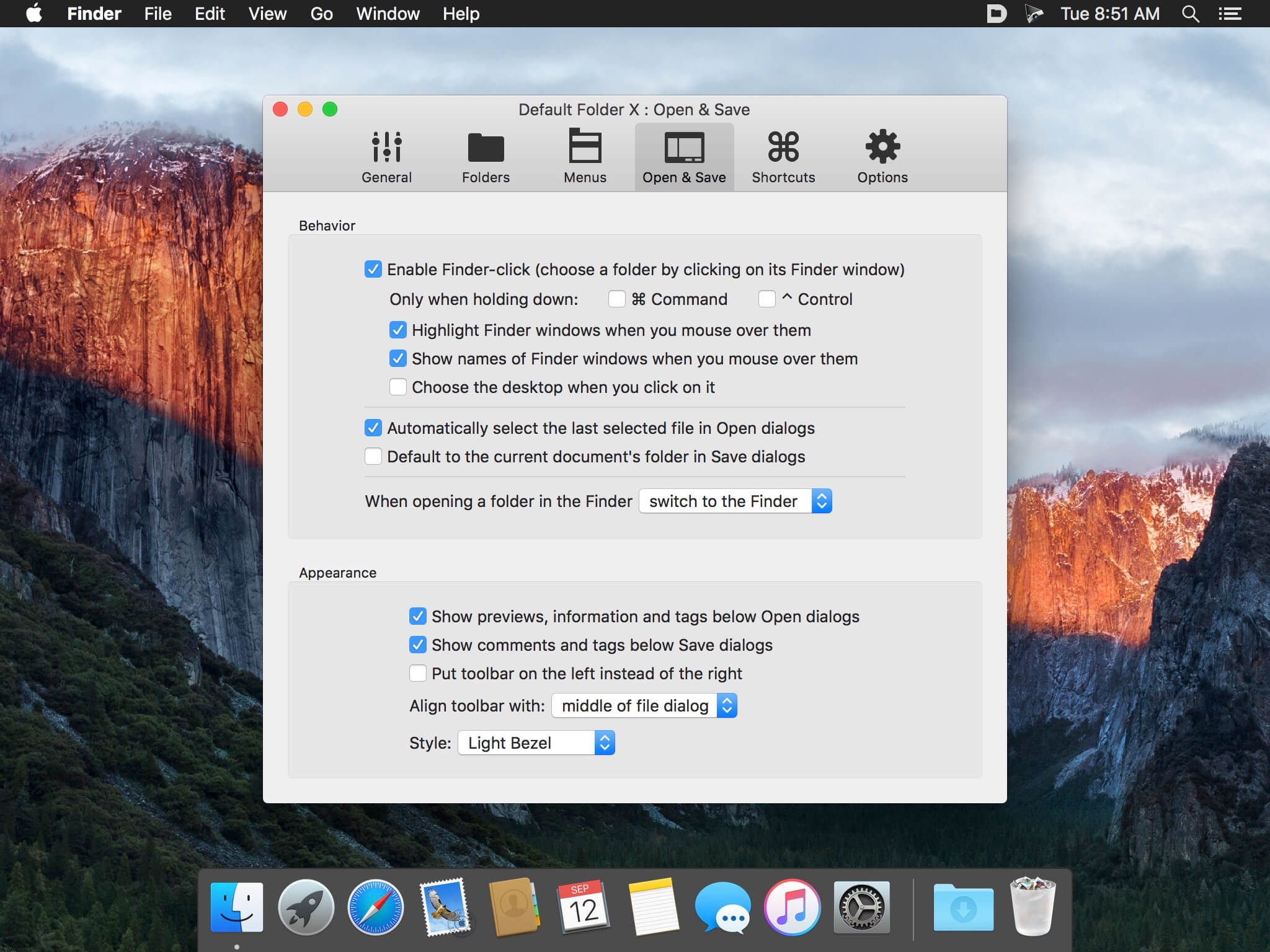 ApplicationApplicationsTools & Utilities Default Folder X 6.2.6 February 19, 2026 ( Default Folder X 6.2.6 )Loading... Download The default Open and Save dialogs included by default in macOS don’t have too many customization options. Default Folder X is a small utility that can help you personalize the entire experience by adding new locations, Spotlight tags, comments, and many more options. Access favorite folders from the status bar and create your own folders lists The Default Folder X status bar menu offers you the possibility to navigate to your default, favorite, and recent folders. At the same time, the menu also allows you to view all opened Finder windows and bring any of them forward. The Default Folder X preferences can be adjusted via a Preferences Pane that will be added to your Systems Preferences. Here you can add specific directories to be used by default with certain applications. Furthermore, you can create your own Favorite Folders list. Open and Save toolbar If Default Folder X is running, each time you want to save or open a file in an macOS native utility, the application will add a toolbar that provides all these options in a more easily accessible manner. To navigate between the different menus, simply put your mouse on top of them. However, you can also make use of the keyboard shortcuts assigned by default to frequently used functions. Integrated Spotlight and QuickLook options To make sure that you can always find your files as fast as possible, Default Folder X enables you to add Spotlight keywords, tags, comments, or labels within the Save dialog. On the other hand, when you are opening files, Default Folder X allows you to preview the documents in a thumbnail and even zoom to full size. Intuitive solution for customizing the default Save and Open dialog Default Folder X is proposing simple solutions for personalizing your experience when opening or saving files. The app is focused on efficiency and will certainly improve your workflow. What’s New: Version 6.2.6: Release notes were unavailable when this listing was updated. Compatibility: macOS 10.10 or later Homepage https://www.stclairsoft.com/DefaultFolderX/index.html Screenshots Name: Default_Folder_X_6.2.6.dmg Size: 32 MB Files Default_Folder_X_6.2.6.dmg [32 MB] Download Torrent Related Posts:Default Folder X 6.0.3Default Folder X 6.0.0Default Folder X 5.7.8Default Folder X 6.0.5 Download 6.2.6DefaultFolder 0 comment TwitterRedditEmail mac torrent MacTorrent - Torrents in Mac. Free Apps, Games & Plugins. Apple Final Cut Pro & Logic Pro X, Adobe Photoshop, Microsoft Office, Pixel Film Studios, previous post BeLight Art Text 4.5.8 next post App Cleaner & Uninstaller Pro 9.1.0