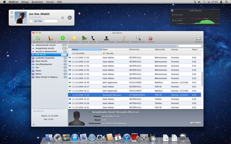 Dial!List (was Dial!Fritz) is a call manager for use with the Fritz!Box Fon of AVM. Incoming calls are displayed on your Mac with caller details from Address Book/Contacts – if these are missing, it tries to get the name by reverse-lookup.