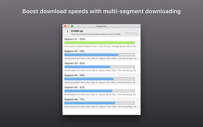 - Faster speeds with multisegmented downloads
