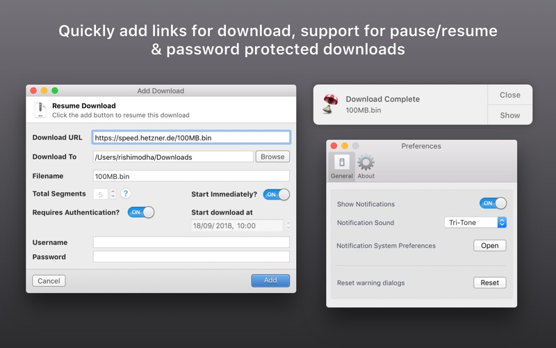 - Download management tool that allows unlimited simultaneous multiple downloads