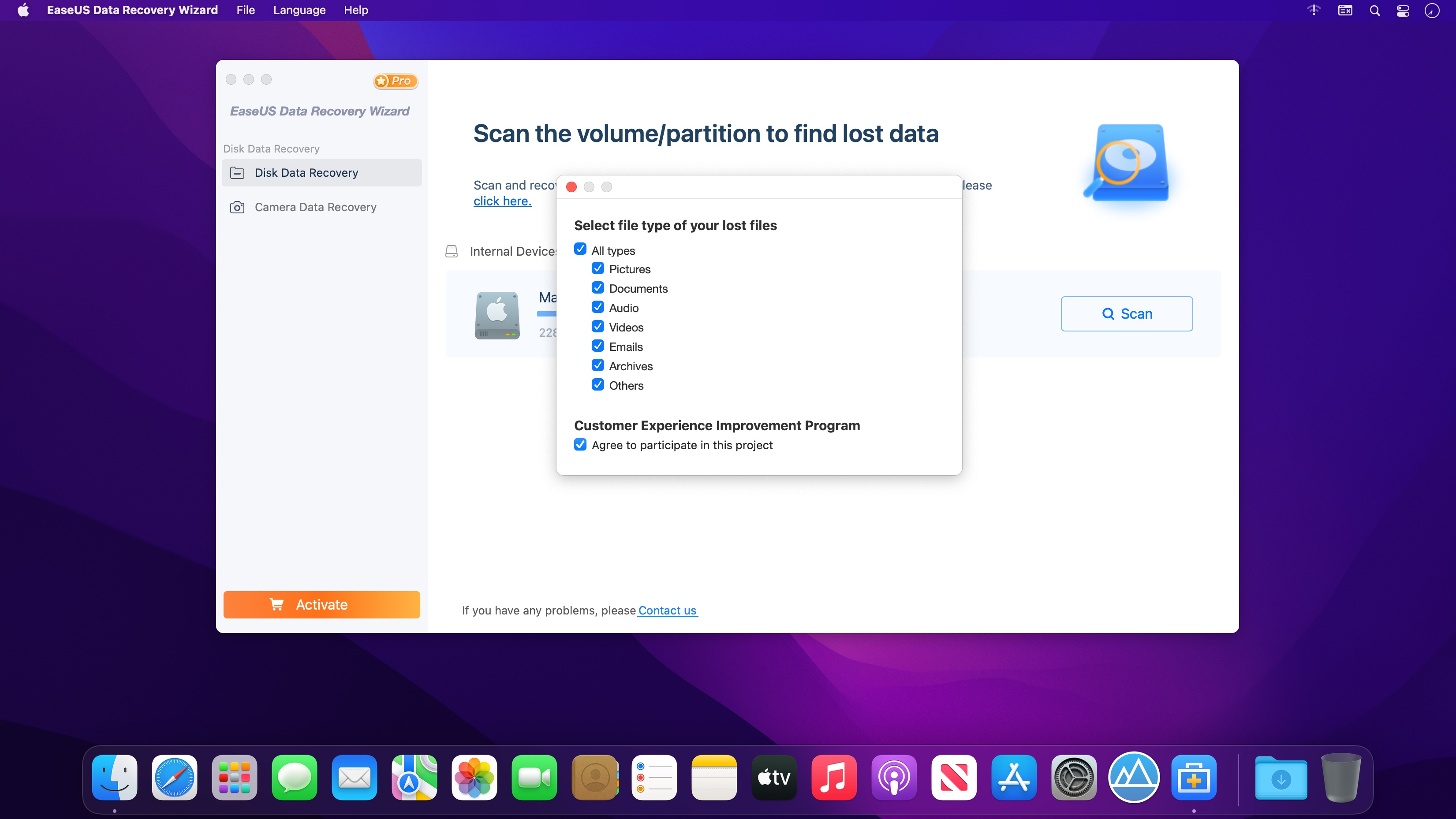 A professional data recovery software for Mac can recover your lost data from the emptied Trash Bin, accidental deletion, or other causes, saving unlimited data by three simple steps. Choose a hard drive, scan to find deleted files, and preview all recoverable files.