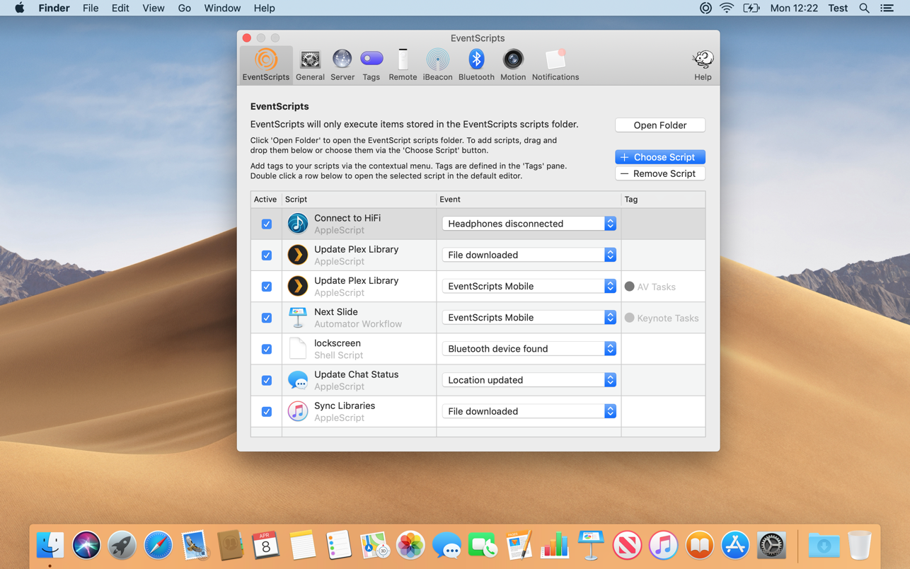 - This version also fixes an issue that could cause EventScripts to hang after login on Big Sur while bluetooth monitoring was enabled. Special thanks to GT for reporting the issue and testing many versions to isolate the problem.