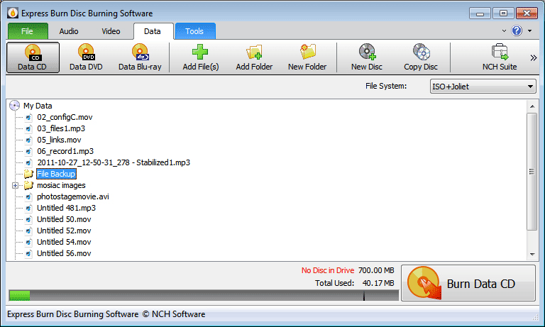 - Burn data discs as ISO/Joliet, UDF or Hybrid