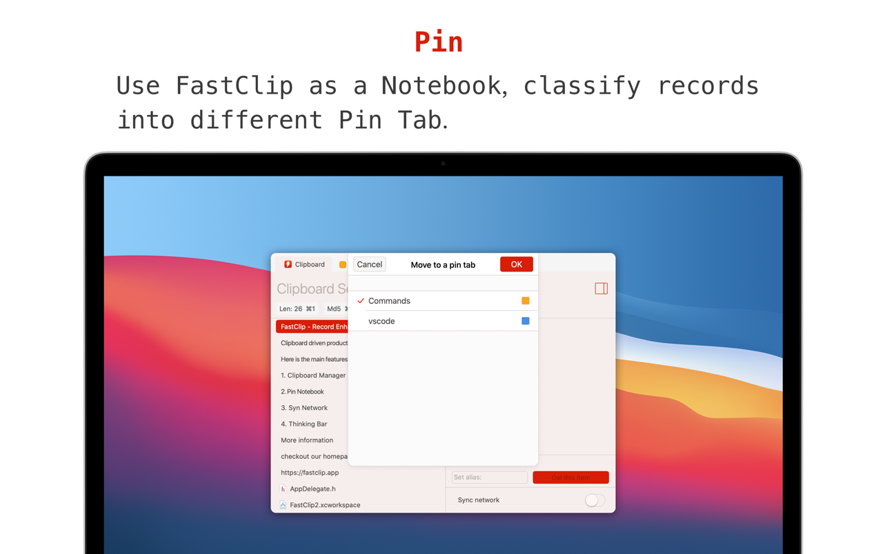 Use FastClip as a light notebook, you can classify records into different Pin Tab. With the function of auto pick, your sorting will be extremely simple.