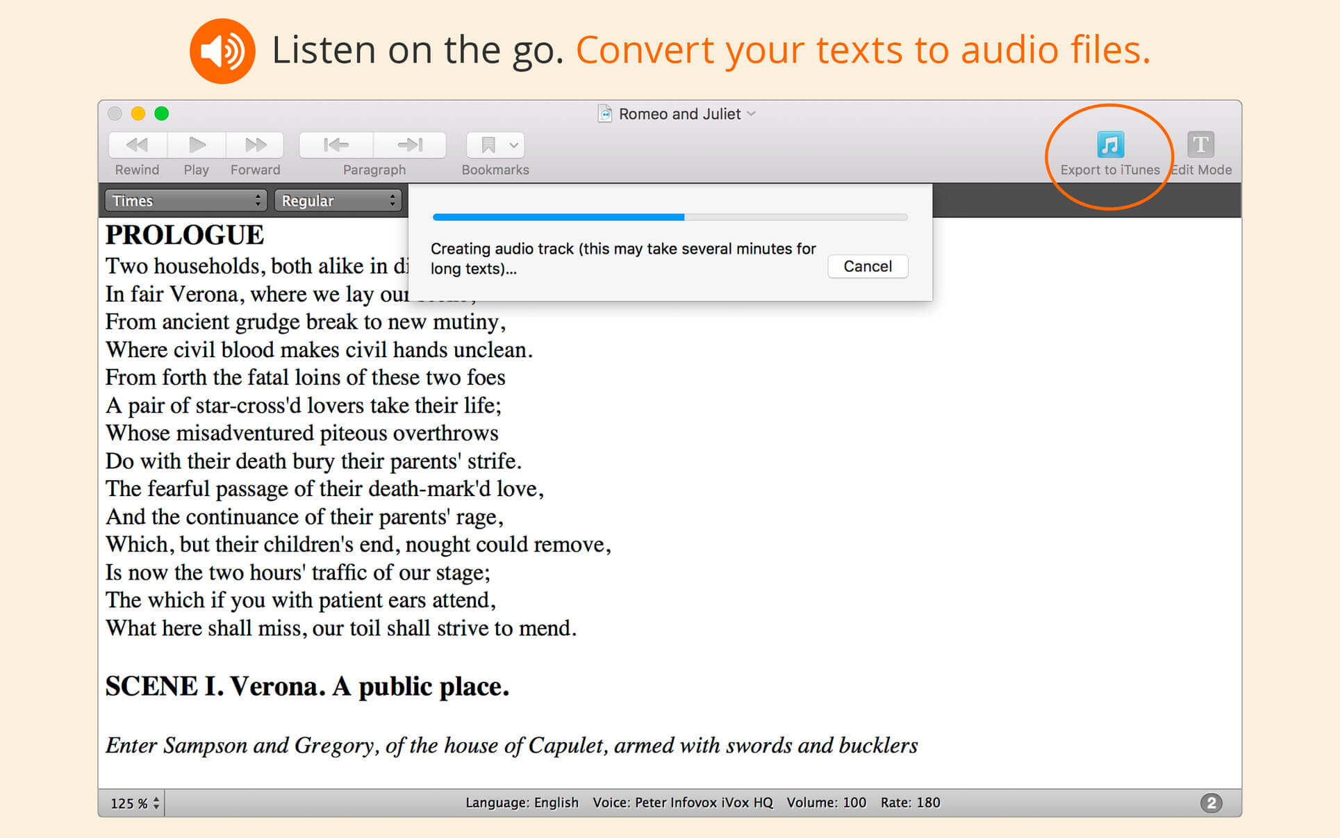 - Export your text to an iTunes audio file