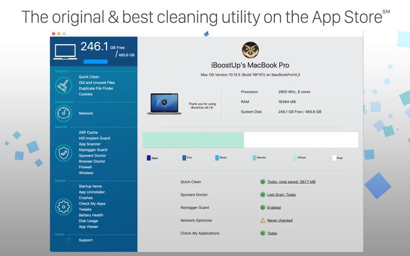 ApplicationsUtilities iBoostUp Premium 9.1 by mac torrent June 5, 2021 June 5, 2021 (iBoostUp Premium 9.1 (1) Reviews )Loading... Download Has your Mac become slow and unresponsive? Has it lost some of the zing it used to have? Are you getting unexpected crashes and error messages? Is your Macbook getting hot and the fan running constantly? If so, you need to download iBoostUp! iBoostUp tunes up and optimizes your Mac by purging unneeded files, fixing your hard disk, giving you performance recommendations, protecting your privacy by removing cookies, showing you easily accessible system information, and much more! iBoostUp’s Memory Booster allows you to view detailed system memory information, and optionally free up memory with its “Boost Now” functionality (Boost Now is available to users of Mac OS Lion or above via in-app purchase). iBoostUp’s Duplicate File Finder helps you regain disk space and reduce clutter by searching for files with identical content, irrespective of location or filename. Duplicate File Finder gives you the opportunity to review and select individual files for removal, but rest assured that in case of inadvertent deletion your files are recoverable from Mac OS’s Trash until emptied. (Duplicate Finder is available to Mac OS Lion users or above via in-app purchase). ARP Cache Poisoning is a hacking technique used to eavesdrop and otherwise manipulate your network traffic. It is of particular concern when connected to untrusted networks such as those found at airports, hotels and cafes. With iBoostUp’s ARP Cache Poisoning Detector you can scan for or be automatically alerted on suspicious network activity. (available to Mac OS Lion or above users via in-app purchase) Reclaim more disk space by using iBoostUp’s Application Uninstaller to seek out and remove application related files instead of simply dragging an app to the Trash. (available to Mac OS Lion or above users via in-app purchase) Old and Unused File scanner Searching for old and unused files on your Mac helps reduce clutter and free up disk space (free for premium users, available to other Mac OS Lion or above users via in-app purchase) Disk Usage Tool Track down which files and folders consume the most space in your home folder, your Mac’s internal or any removable disk. Our Disk Usage Tool is completely free for all users. iBoostUp now features App Viewer! App Viewer examines your selected application to display useful and not always easily accessible information. App Viewer is completely free for all users. Introducing iBoostUp Premium Unlimited. iBoostUp Premium Unlimited users enjoy full access to all current and future iBoostUp add-ons plus priority customer support. This is the recommended option if you’d like to enjoy all that iBoostUp has to offer now and in future with a one off purchase. (premium is available to Mac OS Lion or above users via in-app purchase) What’s New: Version 9.1 Improvements to Quick Clean, Spyware Doctor, Uninstaller and HID Implant Guard. Top In-App Purchases : Premium Unlimited – included Compatibility: OS X 10.9 or later 64 bit Mac App Store https://geo.itunes.apple.com/app/id484829041 Screenshots Name: iBoostUp_9.1_MAS__TNT_Mactorrents.io.dmg Size: 12.1 MB Files iBoostUp_9.1_MAS__TNT_Mactorrents.io.dmg[12.1 MB] Download Related Posts:Navicat Premium 16.1.5Navicat Premium 15.0.36Navicat Premium 16.3.6Navicat Premium 16.3.7 Download 0 comment TwitterRedditEmail mac torrent MacTorrent - Torrents in Mac. Free Apps, Games & Plugins. Apple Final Cut Pro & Logic Pro X, Adobe Photoshop, Microsoft Office, Pixel Film Studios, previous post Pixologic Zbrush 2021.6.6 next post Focusplan Pro 1.6.3