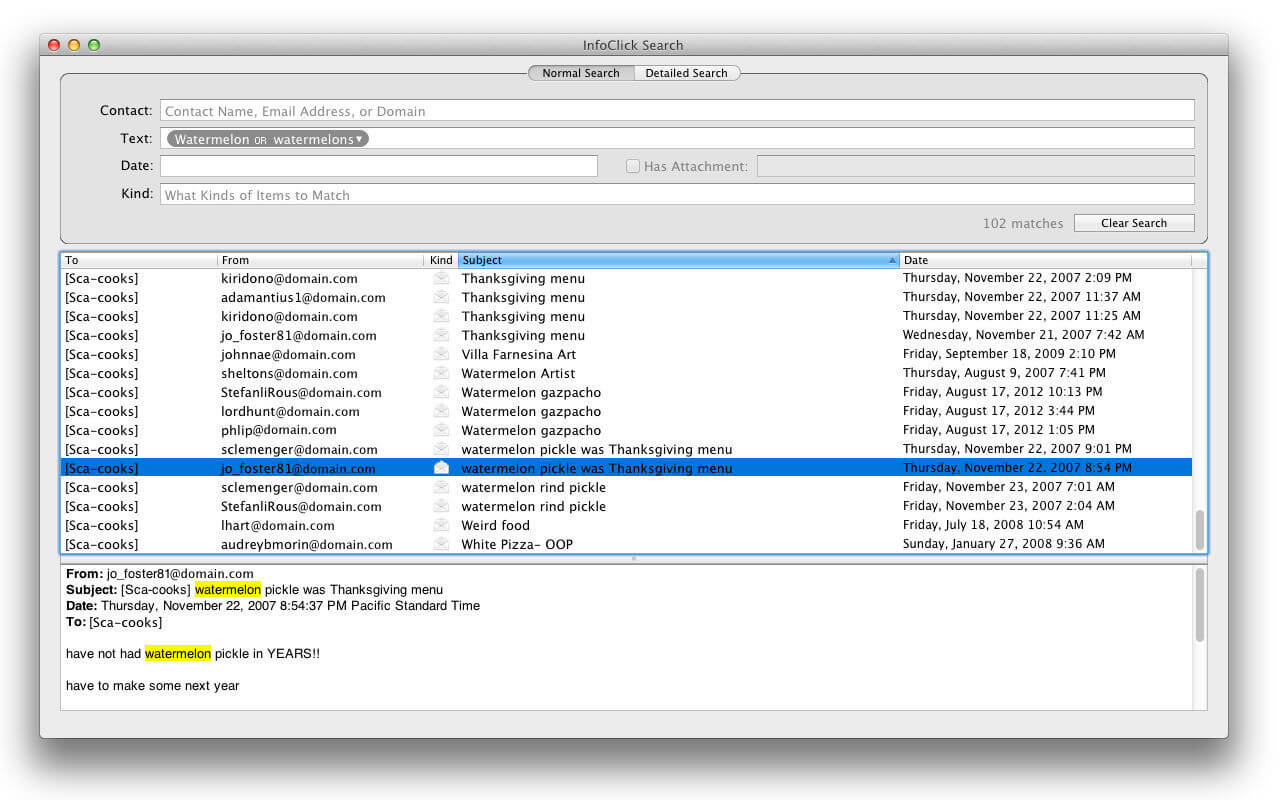ApplicationsInfoClick InfoClick 1.2.6 by mac torrent December 23, 2020 December 23, 2020 ( InfoClick 1.2.6 )Loading... Download InfoClick is designed to be used with Apple’s Mail application to navigate through your emails to see the words, contacts, and information within. InfoClick knows precisely what words you’ve used, so there’s no guessing; it offers a guided process of progressively narrowing down the matches in a series of simple choices. That means you can’t ever produce a search with zero matches. For example, when you’re searching for all emails containing a particular word, InfoClick would show the completions “connection”, “connexion”, and (the misspelled) “connecsion”, if you’d actually used those words in your emails. InfoClick offers additional features to make searching your emails easier. To see all emails received from educational organizations in the US, simply type .edu in the From field. With a single click, you can narrow-down your search to only those emails that had an attachment, and/or those received in a given date range, and/or those that contain specific words. You can choose, as alternatives, all displayed word spellings used in the emails, so you don’t miss an email because of spelling errors. InfoClick also offers a note editor, allowing you to collect and organize links to emails, files, Web pages, and other URLs (notes are completely searchable). Screenshots Name: InfoClick_1.2.6__TNT_Mactorrents.io.dmg Size: 21 MB Files InfoClick_1.2.6__TNT_Mactorrents.io.dmg[21 MB] Download Download 0 comment TwitterRedditEmail mac torrent MacTorrent - Torrents in Mac. Free Apps, Games & Plugins. Apple Final Cut Pro & Logic Pro X, Adobe Photoshop, Microsoft Office, Pixel Film Studios, previous post RAR Extractor – The Unarchiver Pro 6.2.3 next post Grid 1.2