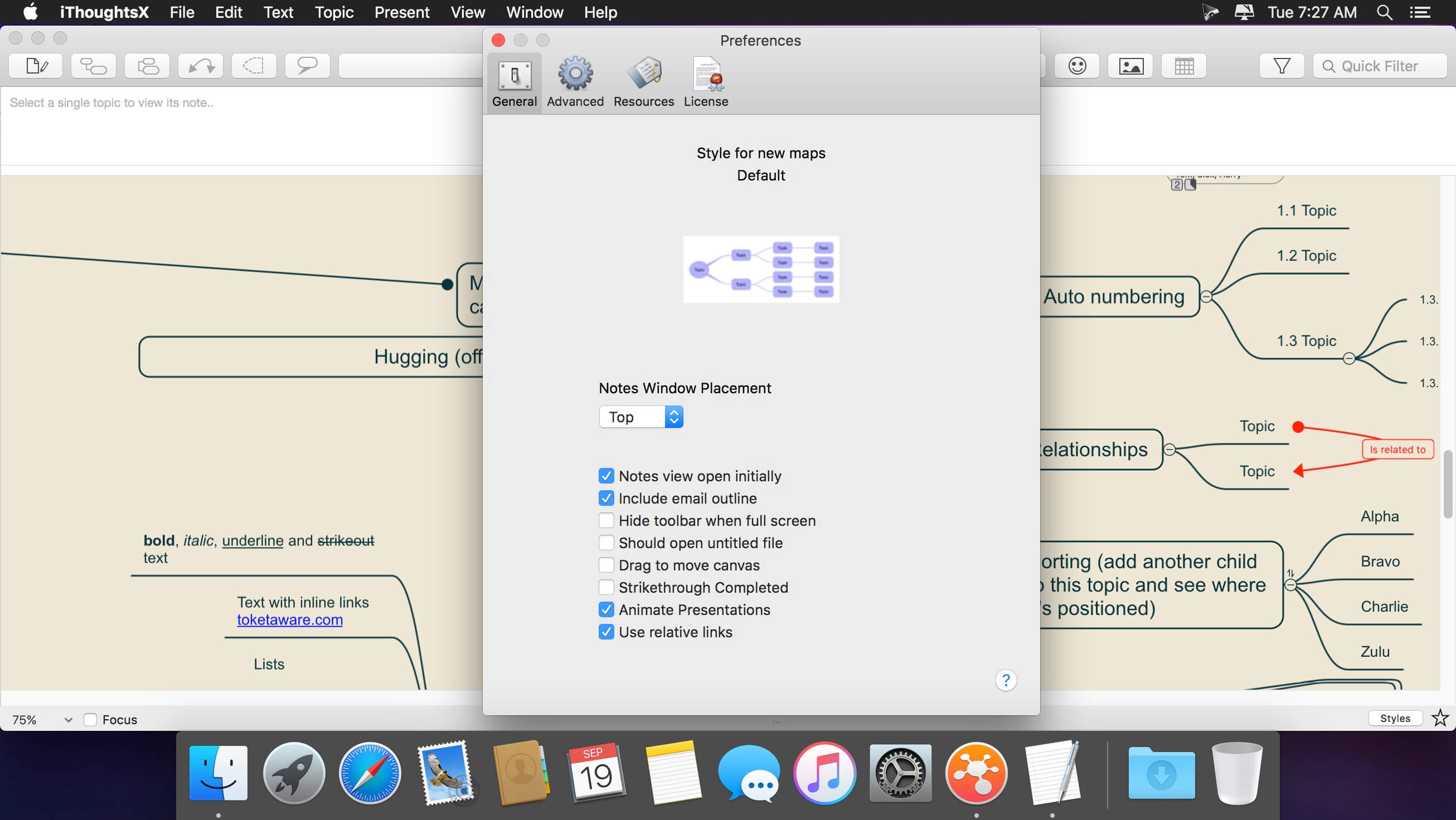 Applications iThoughtsX 5.25 by mac torrent January 25, 2021 January 25, 2021 ( iThoughtsX 5.25 )Loading... Download Mindmapping enables you to visually organise your thoughts, ideas and information. Typical Uses: Course Notes/Revision Project planning Task lists Brainstorming Goal setting WBS Meeting Notes GTD Import and export many different file formats: Mindjet MindManager Freemind/Freeplane Novamind5 XMind iMindmap Mindview ConceptDraw MINDMAP OPML Markdown Plain/rich text CSV MyThoughts (import only) Mindnode (import only) Mindmapper (import only) What’s New: Version 5.25: Release notes were unavailable when this listing was updated. Compatibility: OS X 10.8 or later, 64-bit processor Homepage http://toketaware.com/ithoughts-osx/ Screenshots Name: iThoughtsX_5.25__TNT_Mactorrents.io.dmg Size: 33.6 MB Files iThoughtsX_5.25__TNT_Mactorrents.io.dmg[33.6 MB] Download Related Posts:iThoughtsX 9.2 Download iThoughtsXmac torrentmac torrents 0 comment TwitterRedditEmail mac torrent MacTorrent - Torrents in Mac. Free Apps, Games & Plugins. Apple Final Cut Pro & Logic Pro X, Adobe Photoshop, Microsoft Office, Pixel Film Studios, previous post Waves 12 Complete v25.01.2021 next post QLab Pro 4.6.9