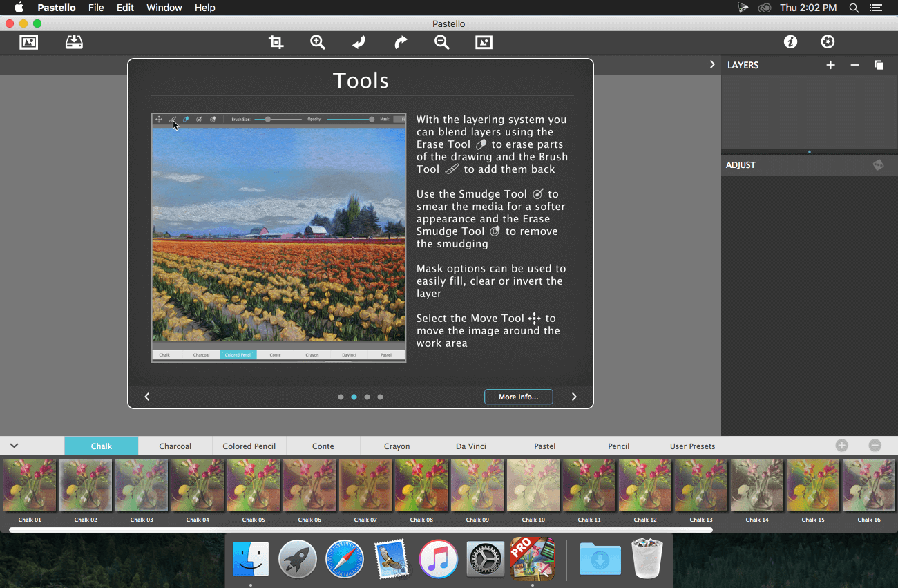ApplicationsPhotography JixiPix Pastello Pro 1.1.18 by mac torrent December 16, 2022 December 16, 2022 ( JixiPix Pastello Pro 1.1.18 )Loading... Download Pastello makes it simple and convenient to take an image and change it into Pastel, Chalk, Charcoal, Crayon, Colored Pencil and Graphite drawings. Use alone or combine these medias using powerful layers to produce interesting expressive sketch effects filled with colorful personality and passion. And the best part is Pastello does all the work. Transform photos into a fine art drawing with Pastel, Pencil, Chalk, Charcoal and Crayon. Introducing Pastello, a brand-new companion app to JixiPix’s Impresso Pro. Pastello takes you back in time to the 15th century. Away from brushes and large strokes and into the realm of dry media with color that is both brilliant and subtle. The “Dry color method” made famous by Leonardo da Vinci is so powerful in its simplicity and beauty with its black and red chalk and yellow pastel highlights. Later, artists would paint charming portraits in a smooth heavily blended fashion. Move forward a few centuries later and pastel quickly became filled with brilliant color and crisp detail. Fast forward to today and a digital age has made it so you, the artist, can mix and match media that is difficult or impossible in a traditional setting. Pastello has a pro workflow that automatically transforms a photo into a pastel drawing and places it on an art paper with options to customize. The Pastel can then be changed to Chalk, Charcoal, Colored Pencil, Graphite, Conte or Crayon using Layer styles. The medias start out delicate like traditional drawings do, then allows you to build them up using fills, shading and detail layers. The medias are beautiful as they are, or mix them for an expressive artwork. Pastello includes plenty of traditional sketch styles as well as a DaVinci effect using a mixed media of pencil, charcoal, crayon and old paper. It’s easy to use! We have mixed the media into one-click presets with all the freedom to customize, blend and fine-tune for your own unique artwork filled with age, depth and timeless beauty as if created by the renaissance artist himself. Pastel—(Soft) is a soft, buttery consistency and intense color. This effect is dense and filled with the grain of the paper. Artists find this media especially good for plein air landscapes because the color ranges are vibrant and the media itself is dustless and portable. Chalk—(Hard Pastel) is a light dusty effect with little specks of preserved paper. This chalky pastel is known for it’s soft strokes and velvety texture. This style is great for creating a fine web of color by stacking or duplicating layers, letting the ones below show through to create a drawing sparkling with interest. Charcoal—creates a velvety black charcoal effect with shades of grey. Use it for warming up the under painting of a composition, or to complete a finished charcoal piece. Colored Pencil—creates soft colorful strokes in the drawing that can be layered to build up color then burnished with a light Pencil Layer, or the Smudge tool. Pencil—creates pencil drawings with fluid outlines and soft, limpid tonal shadings for a drawing filled with warmth and charm. Conté—is a beautiful crayon media for enhancing highlights, midtones and shadows in drawings using five classic colors: Bistre, Sanguine, White, Grey, Gold and a color picker to choose your own—with options for crosshatching and scumbling. Crayon—creates a colorful waxy base to a drawing, then burnish it with a Conte White for highlights or Bistre for shading. Fill Brush— Choose to brush in areas of the drawing with chalk, charcoal, colored pencil or pencil on the layer or fill the entire layer as a base for Pencil, Chalk and Charcoal. Pastel, Chalk, Charcoal, Conte, Colored Pencil, Pencil and Crayon style effects true to real media. Each one has control over stroke size, stroke volume, color and other refinements. Da Vinci style effect mixes 5 fully customizable medias onto aged paper for an old world appearance. Stroke technology inspired by real-world Pastellists Smart Layers for blending pastel styles with options to reorder, duplicate and delete. This powerful feature is great for mixing media. Fill Layer for hand brushing color and texture Paper Layer that reacts to dry media like real paper would. The more you layer the media the more it fills into the paper’s texture. Smart Brushes for touching up brush strokes Smudge Brush for smearing media for a softer appearance Brush Masking to invert, clear or fill in brushed areas Presets for a quick start Customizable Presets to develop your own unique and personal style, or to save your projects with all strokes and layers intact for future editing. User Preset category to store your personalized style in Favorite preset feature sends presets to the front when marked 5 Paper Textures 41 Artistic and Aged Papers 70 Artistic Finishes for adding light and color to drawings Smart links to globally unify color and finishes across all layers 24 Artistic Edges for creating sketchy vignettes around artwork. Each one has options for edge stroke size and blend. Plugin for Photoshop CS3+, Lightroom and Elements for Mac & Windows What’s New: Version 1.1.18: Release notes were unavailable when this listing was updated. Compatibility: Mac OS X 10.9 or later 64-bit, Adobe Photoshop CS3+, CC, CC 2014 or CC 2015, Photoshop Elements 10-13 or Lightroom 4+ Homepage https://jixipix.com/pastello/details.html Screenshots Name: JixiPix_Pastello_Pro_1.1.18_[TNT]_Mactorrents.is.dmg Size: 223.23 MB Files JixiPix_Pastello_Pro_1.1.18_[TNT]_ Mactorrents.is.dmg[223.23 MB] Download Related Posts:JixiPix Pastello Pro 6.0.98JixiPix Pastello Pro 6.0.102JixiPix Pastello Pro 1.1.19JixiPix Rip Studio Pro 1.1.16 Download 1.1.18JixipixPastelloPro 0 comment TwitterRedditEmail mac torrent MacTorrent - Torrents in Mac. Free Apps, Games & Plugins. Apple Final Cut Pro 